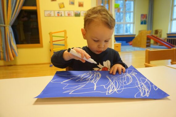 Viele neue Kinder starten mit September wieder in der Krabbelstube. Die neue Umgebung und die neuen Spielmaterialien werden genau erkundet.